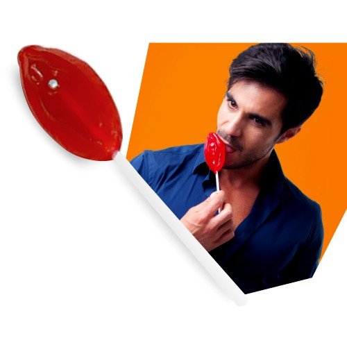 Um chupa-chupa de goma, delicioso e com sabor a morango, em forma de vulva. Ideal para despedidas de solteiro, festas ou para surpreender o seu companheiro com algo diferente e divertido.