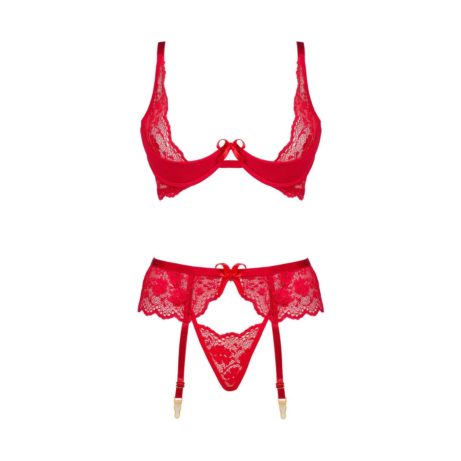 Descubra o sedutor conjunto de lingerie Rose Set Red, composto por um sutiã, uma tanga e um cinto de ligas. Feito de renda delicada numa cor vermelha intensa, este conjunto sedutor realça a sua beleza natural e fá-la sentir-se incrivelmente feminina e sexy. Perfeito para noites românticas ou como um presente especial para um ente querido.