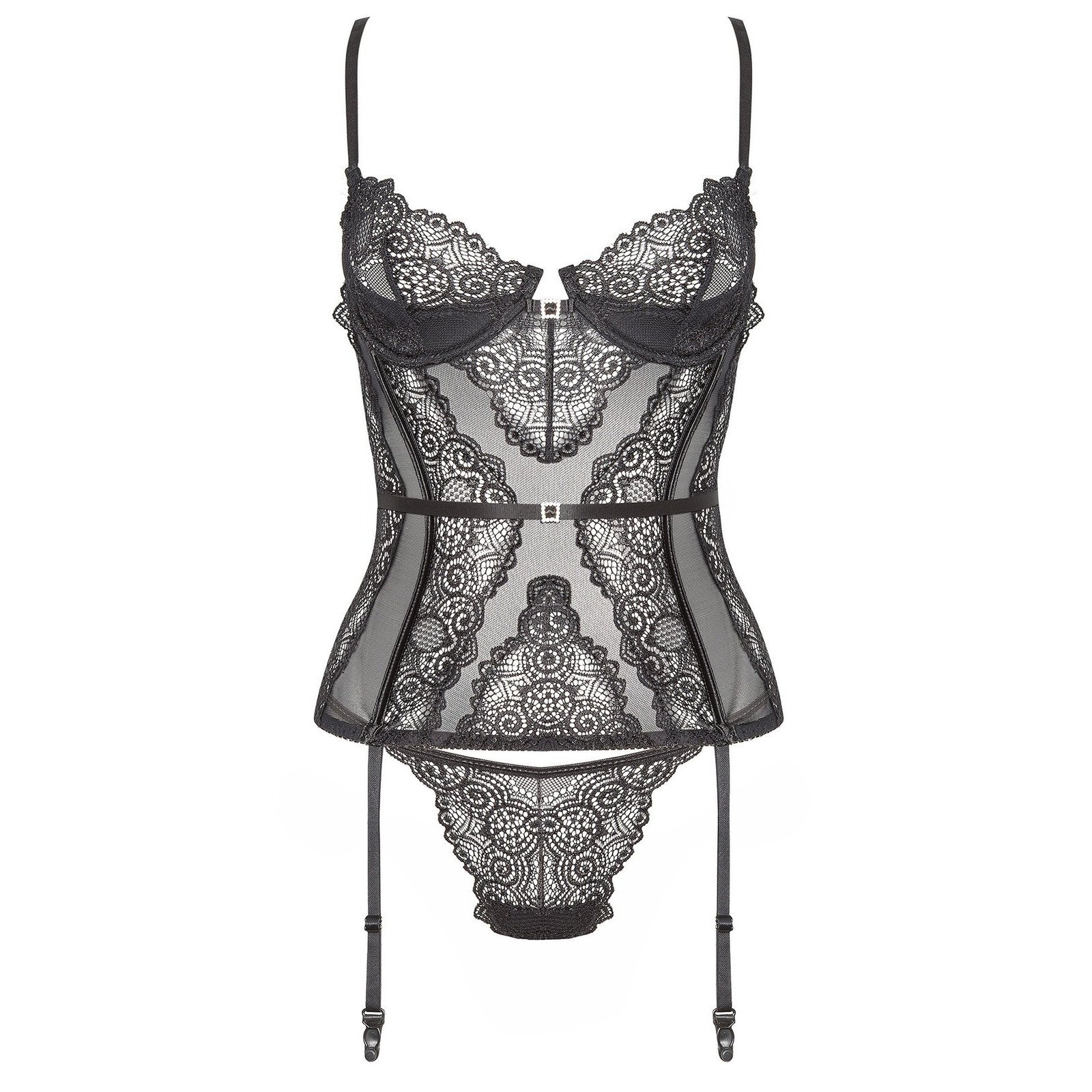 Torne a sua noite inesquecível com o corpete de renda Ravenna em preto. Feito de renda preta e tule, este corpete sensual acentua a silhueta feminina, acrescentando um toque de elegância e sex appeal. Perfeito para ocasiões especiais ou noites românticas a dois.