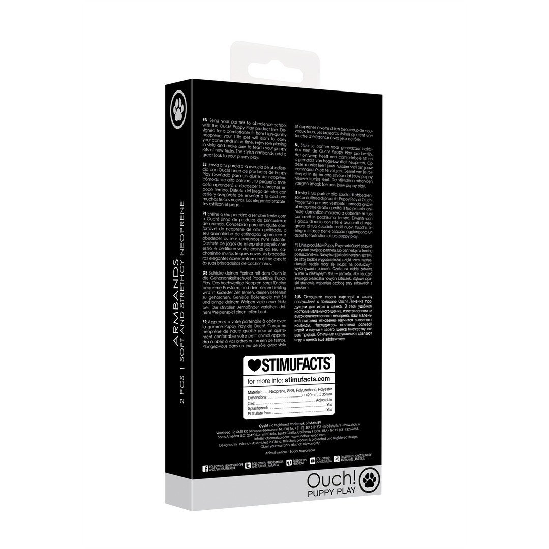 Descubra o prazer do Puppy Play com a faixa de braço Ouch!, fabricada em neopreno de elevada qualidade para proporcionar o máximo conforto. É perfeita para brincadeiras envolventes e cheias de dominação!