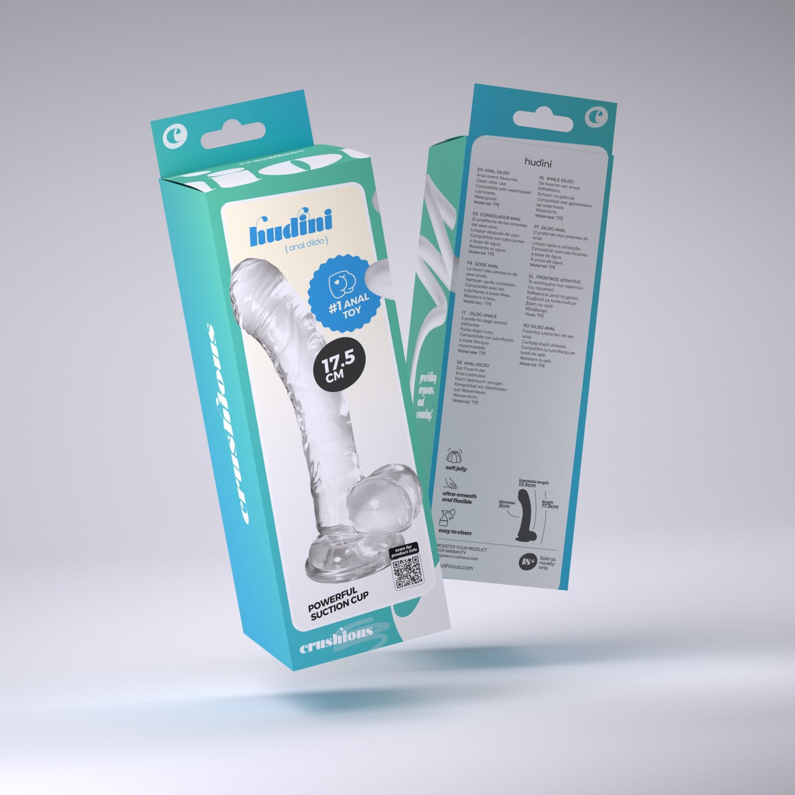 Hudini é um dildo em jelly, flexível mas firme e muito translúcido. A sua glande realista e a sua estrutura com veias estão ansiosas por desaparecer dentro de si!