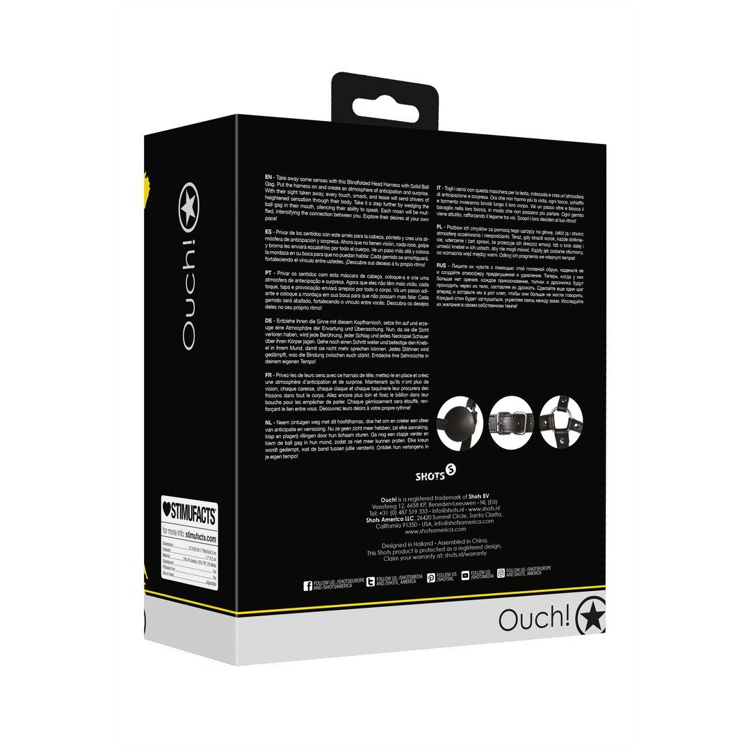 Deixe-se levar pelos sentidos com esta máscara, que inclui uma venda para os olhos e uma mordaça de bola sólida.