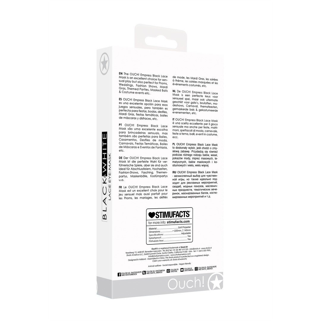 A máscara OUCH! Empress Black Lace Mask é uma excelente escolha para jogos sensuais, mas também é perfeita para bailes de finalistas, casamentos, desfiles de moda, Mardi Gras, festas temáticas, bailes de máscaras, eventos de fantasia, etc.