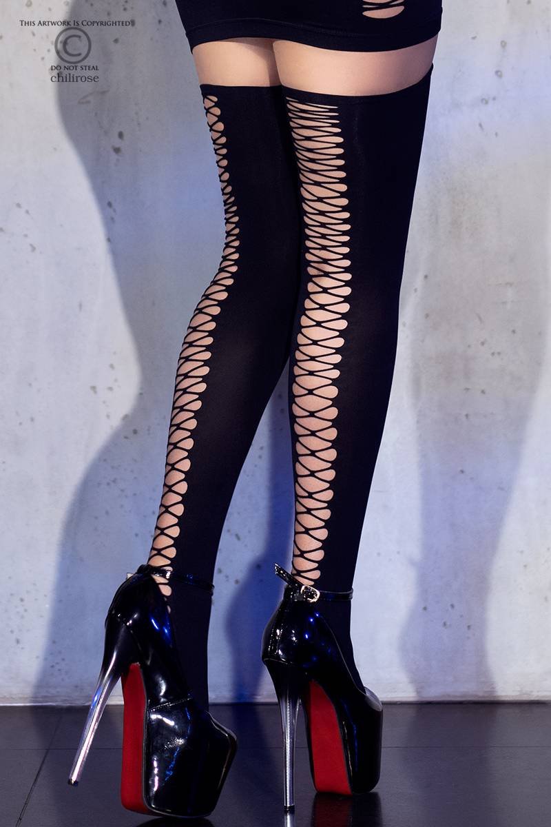 Fantásticas meias de ligas com elasticidade 4D e efeito visual de corpete na parte de trás. Use-as para complementar o seu visual.