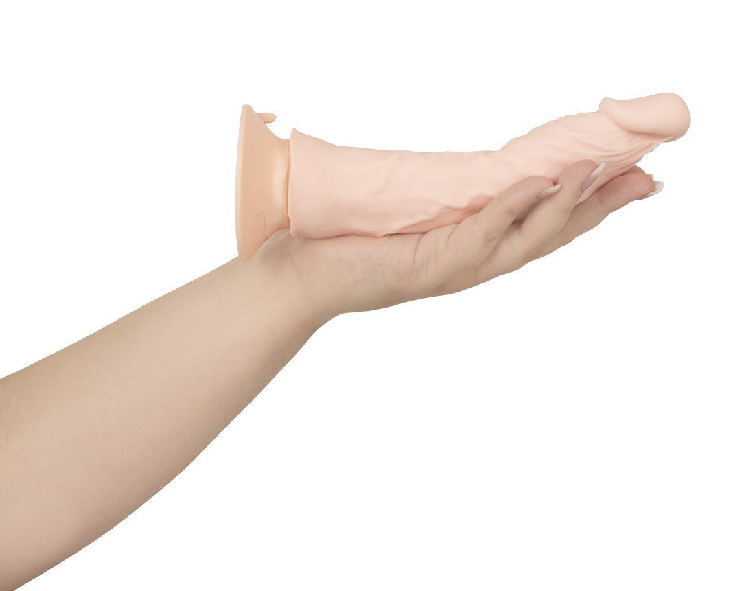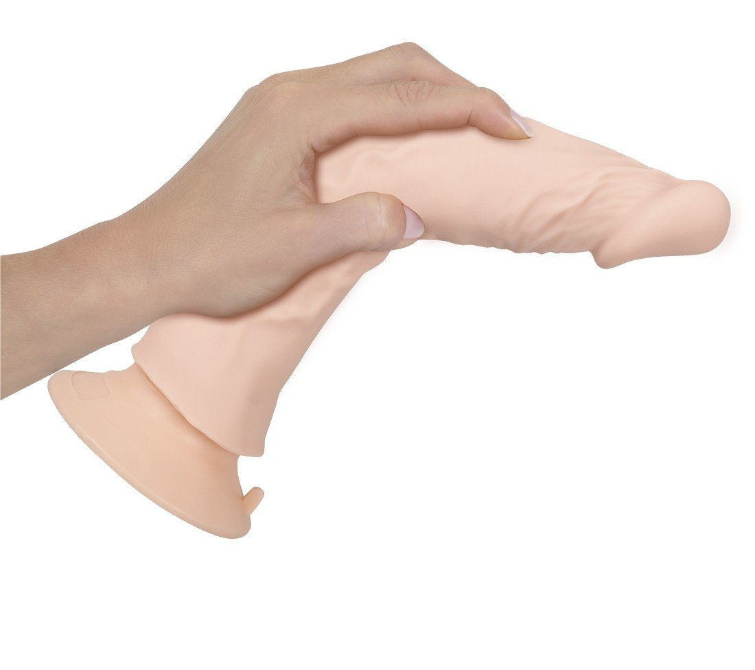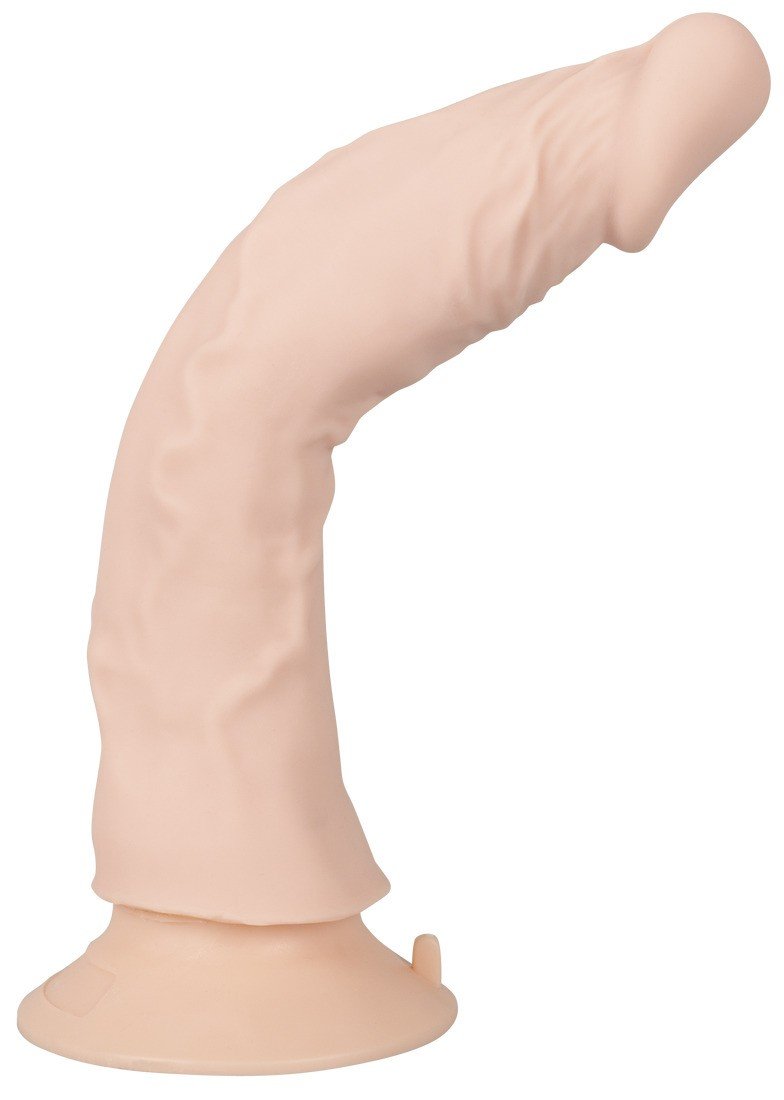 Vibrador realista Bendable RC Vibrator da Nature Skin que parece um pénis real com veias pronunciadas e glande saliente. Tem uma ventosa que se agarra firmemente a qualquer superfície lisa e torna possível o prazer de mãos livres. Isto também significa que o vibrador realista é compatível com cintas e arneses.