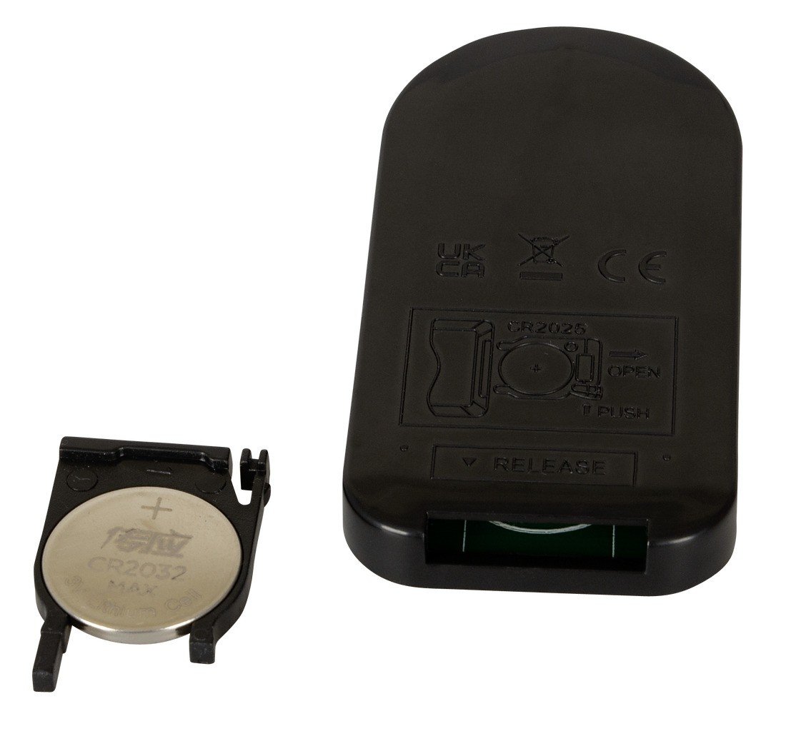 Recarregável – inclui um cabo USB e uma bateria (CR2025) para o controlo remoto.